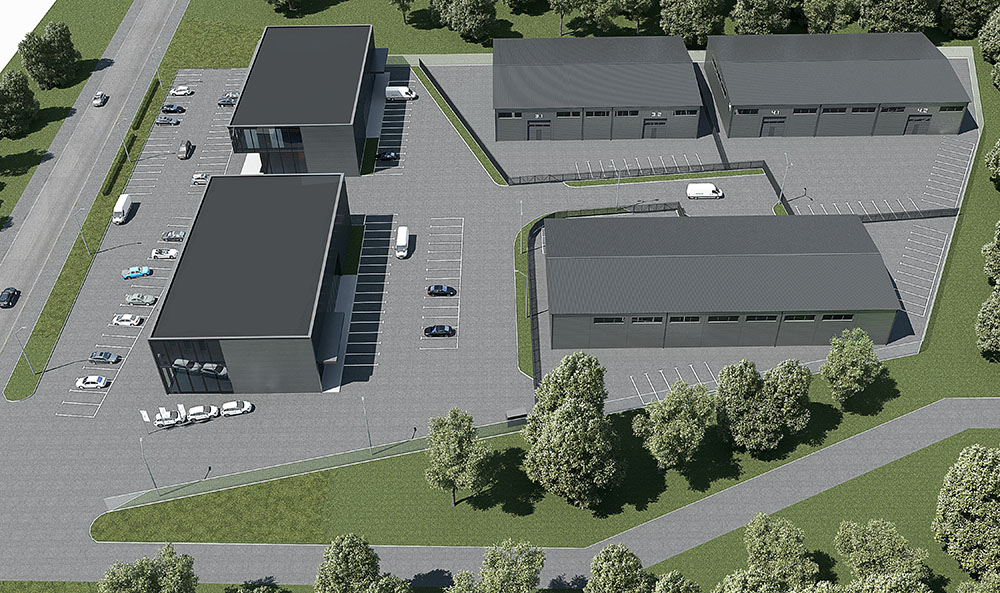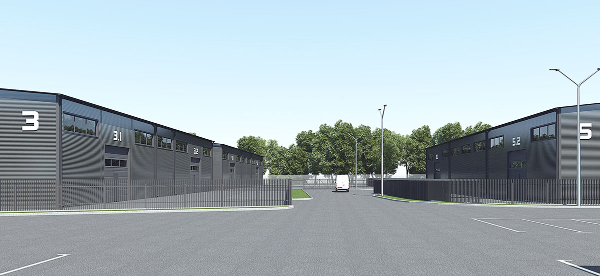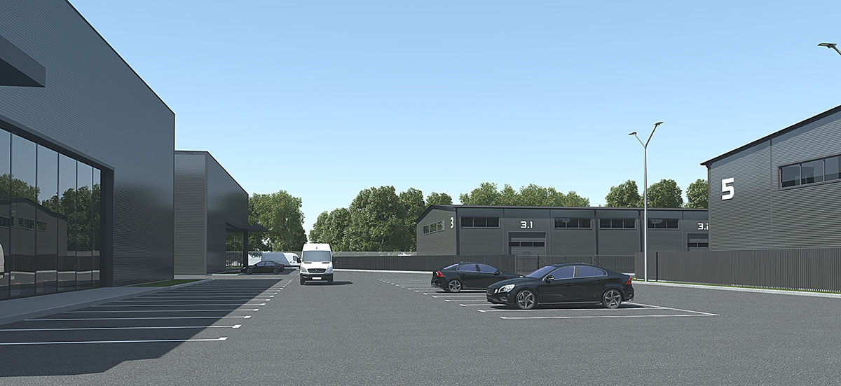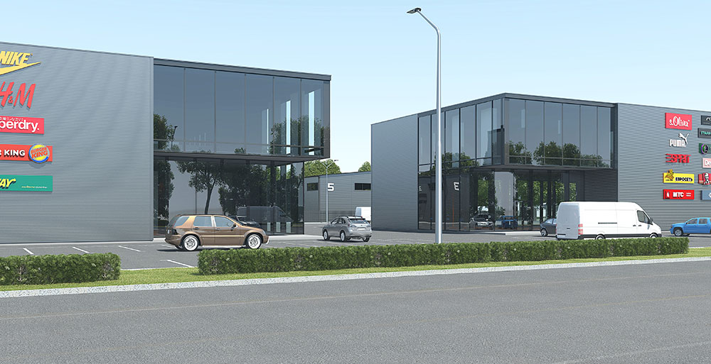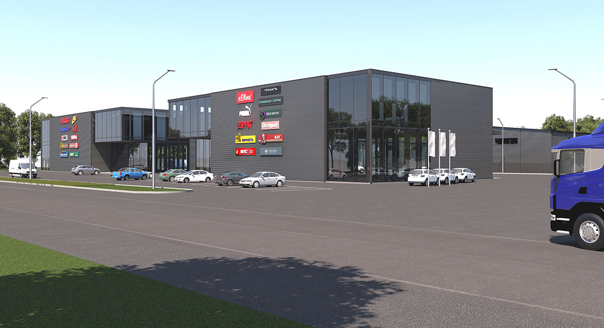 Концепция предполагает комплекс промышленных зданий под сдачу в аренду с двумя зданиями под розничную торговлю — ритейлами. Все здания из металлокаркаса с обшивкой сэндвич панелями с кровлей из профнастила.